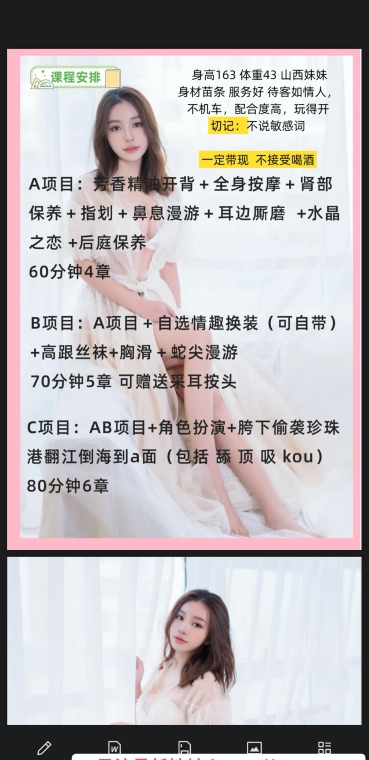 最近母老虎不外在,开始翻阅各种论坛开始对比,看着很不错生活照,没有什么风尘气息,加了QQ咨询了价位项目,照片是本人,要了位置,约好时间过去,到了位置,遥控上楼,看到妹子,是本人,皮肤很好很白,遇到这么好的货,心里美滋滋,简单沟通了下课表项目,确认价位,开始宽衣洗澡,妹子陪浴,会搓搓背,用胸转圈圈,搞的澡还没洗完硬的不行了,妹子冲洗了下,看我这么的硬蹲下来,含住了吹了两下看我有点忍不住了,立马停下换着舔蛋蛋,还会吸的啪啪响,技术很棒,然而我已经忍不住要射了,就让妹子继续口,两腿抖了下爆了一口浆,妹子吐在手很多,妹子问我是不是很久没玩了,子弹这么充足,单身狗一枚又加上疫情,全靠右手啊,洗完上床,常规前奏,AB面胸推阴腿吸皮,很耐心的做完,这时已经硬的不行了,妹子又准备含住,口了一会,直接让妹子带帽开战,把这段时间的憋的货,通通搞出来,榨干了回家